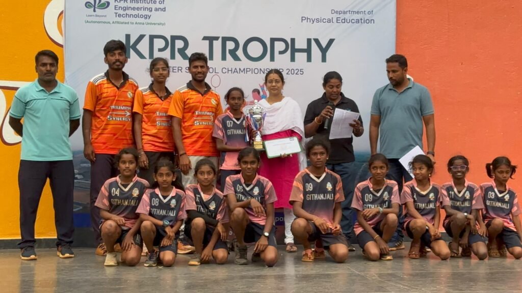 The Kho Kho Under-12 team of Githanjali Public School secured an impressive 3rd place in the KPR Trophy – Inter-School Championship 2025, held on Sunday, 10th August 2025. This achievement is particularly noteworthy as our young athletes competed against teams in the Under-19 category, demonstrating exceptional skill, resilience, and sportsmanship well beyond their age group.